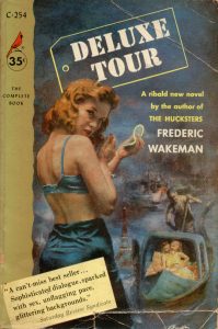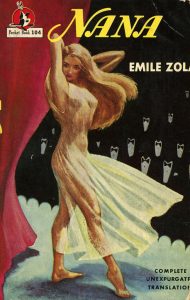 In an effort to generate interest, cover art often bordered on lewd. For example, Mickey Spillane’s book, “The Erection Set” (1972), featured a nude photo of his wife. The publishers had to reissue a more tame cover, without any cover illustration, for general-audience stores like the supermarket or drugstore. Yet even in the 1950s, cover art was daring, but often did not match the content of the book itself (Bonn, 1982, p. 55-56). The cover art for Emile Zola’s “Nana” was published by Pocket Books in 1941 with a somewhat provocative cover; Nana was on stage in a flimsy, strapless gown. Even though Pocket Books was known for relatively conservative covers, a subsequent edition of “Nana” was even more scandalous. Nana is once again on stage, and her gown is still white, but the fabric in the new cover art is transparent, and Nana is posing in a way that the dress hardly covers her (Bonn, 1982, plate 15a and 15b). Despite the sensational and potentially offensive cover, the cover art did not decrease sales for Pocket Books (Bonn, 1982, plate 15). “The Private Life of Helen of Troy” is perhaps one of the more scandalous covers, since it depicts Helen in a gown so transparent that the book was dubbed by news outlets as “the nipple cover.” The publishers most likely avoided a lawsuit for obscenity because Helen was a figure from Classical antiquity (Davis, 1984. P. 138). Cover art became so sensational that it often misrepresented the content of the book (Bonn, 1982, p. 55-56; Davis, 1984, p. 135-141). The slightest shocking passage in the text was amplified on the cover. Even a Nobel Prize winner like Sinclair Lewis’s “Babbitt” was given an exaggerated cover, in which Babbitt catches the attention of two women in tight clothing (Davis, 1984, p. 139).