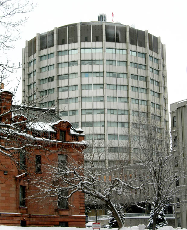 McGill’s Life Sciences Library, also known as the Osler Medical Library, is located on the third floor of the remarkably annular McIntyre Medical Building. The Medical Library was established in 1823, and it’s the oldest and first of the McGill University Libraries. The pictured building was completed in 1965.