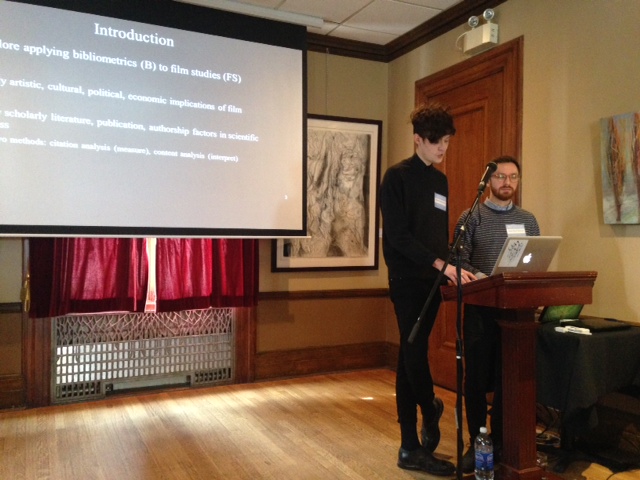 - Patrick Brian Smith and Jesse David Dinneen, both PhD students, discussed their work in applying bibliometric techniques to film theory, and the challenges this work entails.